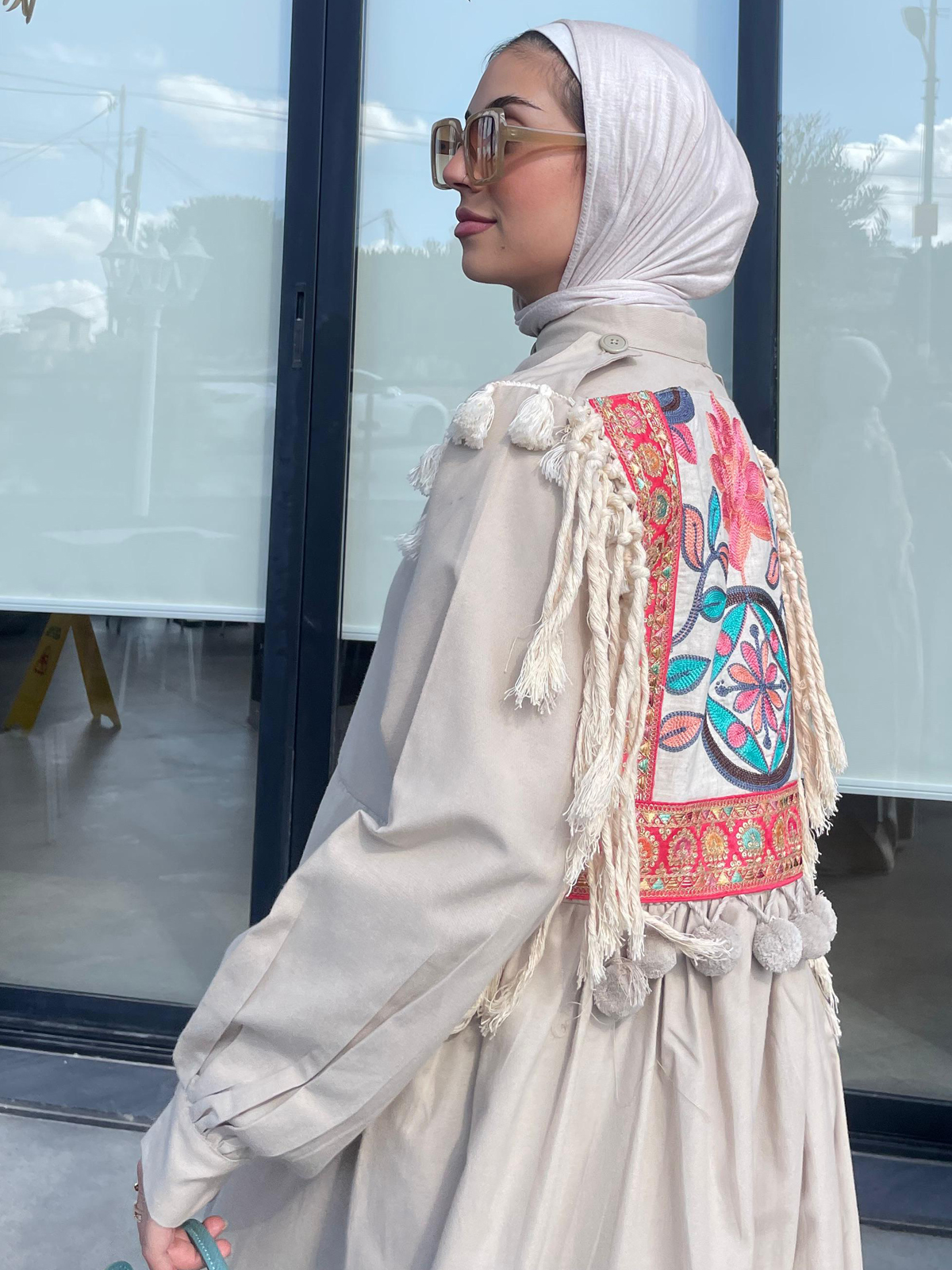 جولة في قصر تارخي عريق , لوحة من الزركشات الدقيقة بألوان جريئة متناغمة و هدب منسدل على الظهر يروي تاريخ زاخر بالأصالة و الفخر , قطعة تتجاوز حدود الزمن و تعانق الإبداع بصمت